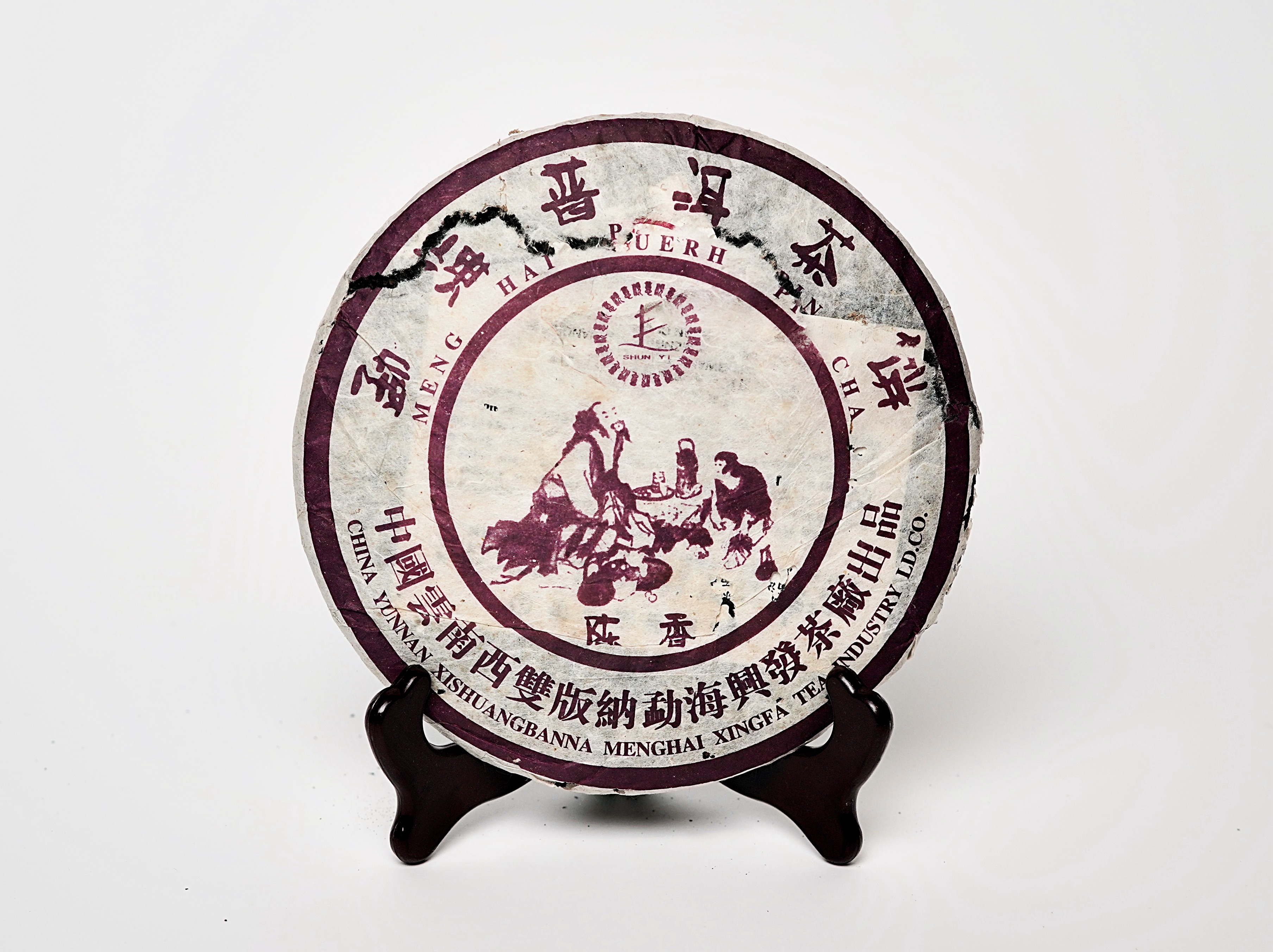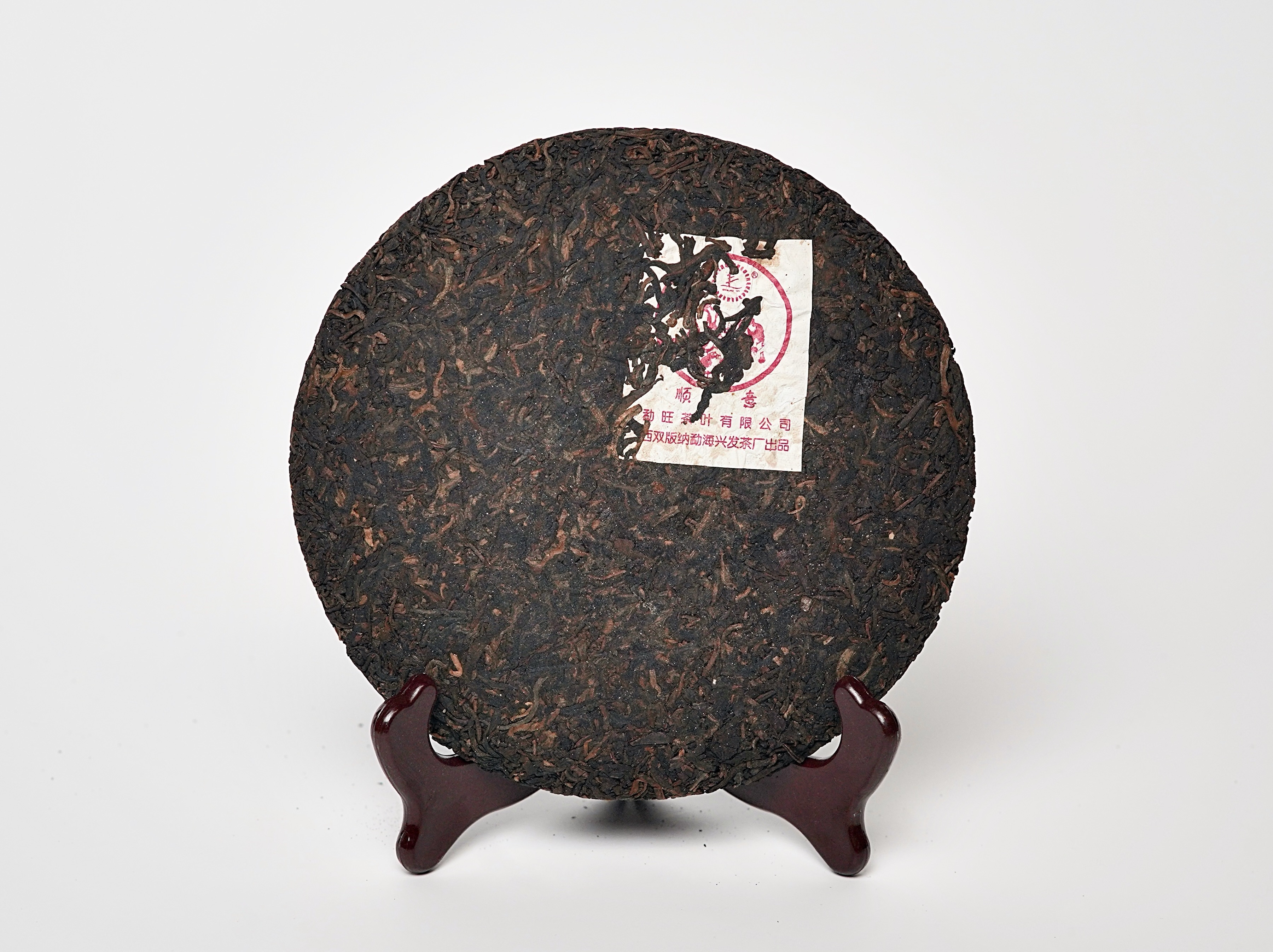Классический шу пуэр. Структура чая отличается средней плотностью прессовки и характерной классической упаковкой с красной печатью. Аромат сухого чая насыщенный, с древесно-ореховыми и лёгкими шоколадными нотками. Настой густой, тёмно-каштанового оттенка.