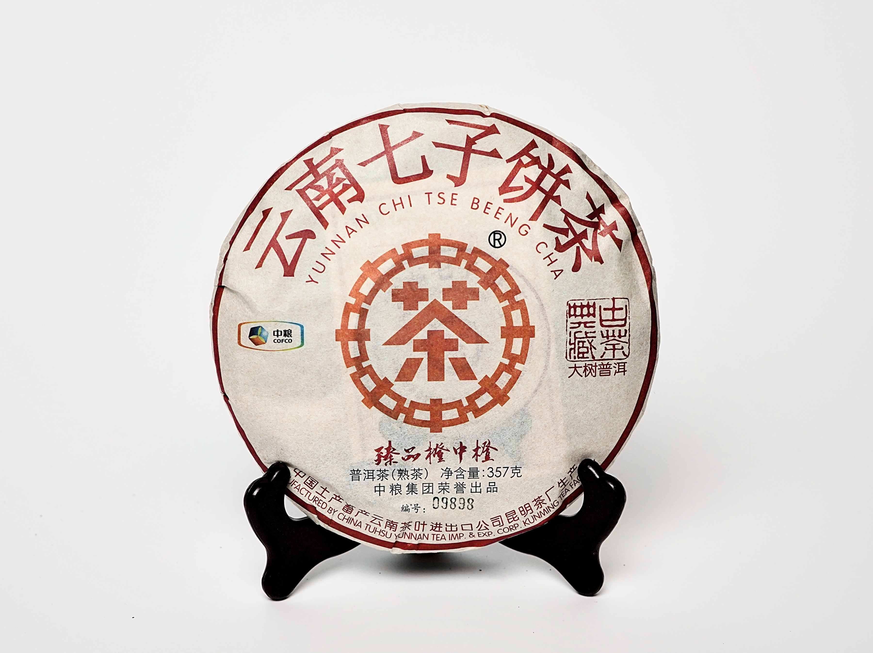Классический шу пуэр. Структура чая отличается средней плотностью прессовки и характерной классической упаковкой с красной печатью. Аромат сухого чая насыщенный, с древесно-ореховыми и лёгкими шоколадными нотками. Настой густой, тёмно-каштанового оттенка.
